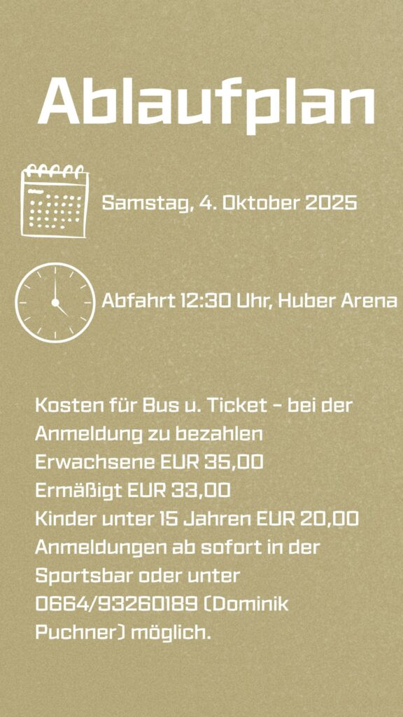 Abfahrt: 12:30 Uhr, Huber Arena