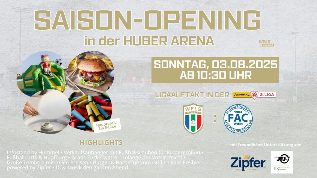 Seid dabei, wenn der FC HOGO Hertha Wels die neue Saison 2025/26 offiziell einläutet, mit einem besonderen Fußballfest für die ganze Familie beim Ligastart der ADMIRAL 2. Bundesliga in der 1. Runde gegen FAC Wien.